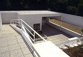 Después de tocar el timbre que anunció nuestra visita, entramos a la propiedad, de unas seis hectáreas, en cuyo centro se encuentra la casa, como un monumento geométricamente puro, liso y silente al ingenio de Le Corbusier. El espacio disponible en esta propiedad de Poissy, le permitió a Le Corbusier el completo desarrollo de sus cinco puntos: la terraza en el techo, la edificación sobre pilotes, ventanales longitudinales, planta y fachada libre.