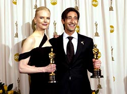 En los puestos de cabecera vimos a Catherine Zeta Jones, Jack Nicholson, Martin Scorsese, Salma Hayek y docenas de productores ejecutivos ansiosos por devorar el platillo principal. Desafortunadamente para los glotones encorbatados de New Line Cinema (El Señor de los Anillos: Las Dos Torres), los tragaldabas empingorotados de Miramax (Chicago, Gangs of New York, The Hours y Frida) acapararon hasta un entremés secundario, en un festín organizado por la ABC para la sucursal independiente de la Disney. En dos platos y sin vergüenza, el ratón miguel, dueño de ABC y Miramax, fue el gran agasajado de la noche, o mejor dicho, el único sibarita conforme con el injusto reparto del condumio. Y no era para menos, pero tampoco para tanto, considerando la desproporción en la distribución de los panes.
