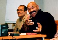 Tras una pausa, entra Oscar D´León, dicharachero, con la familiaridad que lo caracteriza, entra a la sala con un ¡Bueno! y uno por uno, saluda y le da la mano a todos los periodistas, en su mayoría Belgas, Holandeses, uno que otro latino coleado, pero casi todos hispanoparlantes. Mientras que Valdés fue casi enteramente traducido, cosa que hizo la entrevista bastante lenta, al sonero del mundo lo primero que le dijeron fue aquí todo el mundo habla español, cosa que aprovecha para hacer un chiste comparando su calva con la de un enviado de un programa latino de radio en Bruselas y para dar una breve introducción a su presencia en Bélgica.
