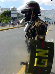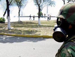 En vista de que no íbamos a pasar, fui a ver qué era lo que había en la cuadra de al lado. Gente arrecha con el gobierno era lo que había: unas 200 personas, entre Marcos Parra y el Liceo Fermín Toro, habían comenzado a quemar cosas en medio de la calle. Más arriba, otro cordón de la GN protegía a diez mil boinas rojas que hacían la ola. Un piquete de la GN venía hacia nosotros, disparando al aire. Alguien gritó ¡Dale! ¡Dale! ¡Son salvas! ¡Dale que no son tiros!. Vi hacia atrás, al parecer la idea colectiva fue arremeter en masa contra el pequeño grupo de guardias, así que corrí también. Total, esa gente está entrenada para controlar, no matar gente -fue lo que pensé. En eso, sonaron otras descargas y la misma voz gritó ¡Esos si son tiros! ¡Esos si son tiros! y todos corrimos de vuelta. Me agaché y una piedra me cayó al lado del zapato. Ahí lo entendí todo. Tomé la piedra y la lancé hacia los guardias. Luego otra, y otra hasta que vi que bajaron sus escopetas y dispararon. Me escondí detrás de un quiosco. Improvisé una capucha con mi bandera cuando comenzaron de nuevo las lacrimógenas.