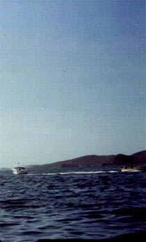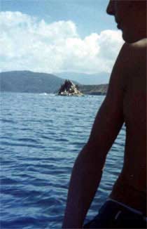 En la mañana, la marea ha traído al pie de las casas desperdicios varios, casi todos provenientes de los yates. Aún así, hay peces grandes que los muchachos pretenden pescar instalados en el peñero. Pasan casi dos horas de burla femenina (los anzuelos aparecen doblemente vacíos, sin carnada y sin pez gordo), y decidimos retomar la subida para llegar a la playa al otro lado de la isla. Los más impacientes se adelantan para lanzarse en un laberinto de peligrosa vegetación. Los rezagados oímos un par de voces infantiles que nos preguntan desde lejos si vamos a la playa. "¡Sí!" "¡Pero ese no es el camino; es por aquí!" Sin más, vemos aparecer un niño y una niña algo burlones, "¿Y para dónde van ellos? Se van a perder" Nos sacan de los escarpados zarzales para llevarnos por un camino blando, de arena rojiza. Una que otra espina de cactus se clava en nuestras sandalias y zapatos; la niña va descalza.