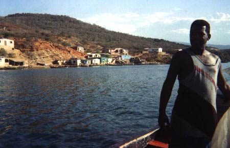 Dos hombres nos dicen que vienen de Güiria y están por salir. Nunca hay ocho hombres bregando en el mismo peñero, así que los seis polizones nos contentamos con ir sentados en la montaña de la red de pescar, aún mojada, lo mismo que las cobijas, ollas, platos, lámparas y demás componentes del kit. El viaje nos cuesta sólo ocho mil bolívares más dos tragos de whisky. Media hora después llegamos a El Congrio, una islita salpicada por una veintena de casas de pescadores. No hay playa ni muelle; simplemente las casas incrustadas en la roca, abriendo sus fauces al agua, recibiendo la arena sobre sus mejillas agrietadas por el sol. El viaje termina con la suave queja del peñero contra el caucho en el que se estrella.
