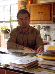 Fragui: Con la pintura pretendo lo que pretendo con todo lo que hago, darme mucho goce personal, goce estético, así como disfruto haciendo un cuadro puedo disfrutar haciendo un gol, cuando puedo porque ahora cuestan más, y están un poco escasos. Me produce mucha felicidad la pintura. El asunto es sencillo, cuando éramos niños todos pintábamos, todas esas cosas eran festejadas, el hombre por razones de trabajo abandona todo eso, he querido desde hace algún tiempo recuperar algunas cosas que hacía cuando niño. Creo que mi poesía y mi pintura van de la mano.