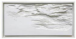 De ésa manera dejé atrás las figuras otrora denominadas por Marta Traba ‘humunculus’, y me apasioné con algo mucho más simple y elemental, como unos trazos que luego convertí en ‘Nubes’, y que dieron cuenta de mi gran interés por la abstracción de los grafismos, pero, ésa vez sobre soportes más firmes, como cartones, planchas de madera y plexiglass. De ésa manera mi trabajo desembocó en el ‘paisaje’! que propuse, en un principio, idealizado en blancos sobre blancos, con relieves y abultamientos producto del collage y del ensamblaje. Comencé a investigar con pegamentos epóxicos, resinas, arenas, mecates, alambres, cartonajes, etc.