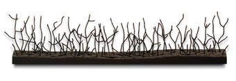 Entonces, a finales de los años 80s y principios de los 90s, sentí la necesidad de plantearme ‘vegetaciones’ dentro de ésos reposados paisajes: ‘árboles’, ‘arboledas’, ‘germinales’, y hasta un ‘huerto’. Comencé entonces a salirme de los soportes de pared para mostrar unas obras corpóreas que a su vez me guiaron, inevitablemente, hacia el tema de los alimentos, pero ésta vez, a través del ’bodegón’ de la culinaria, que denominé ‘Paisajes domésticos’. Otro universo de sensaciones, también diferente a los dibujos y a los cuadros.