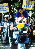 En los habituales mensajes maniqueos, el impedido interpreta al villano de turno, al despiadado millonario en cochecito eléctrico, al pirata en río revuelto y al Barón Ashler de la manga en boga. Es la asimetría al servicio de la retórica simétrica, la clásica comparación entre la fealdad y la belleza, con fines aleccionadores.