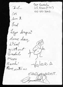 No por casualidad coinciden la primera fé de erratas y la primera entrevista de esta sección. Ambas, por supuesto, sobre Sur Carabela, de quienes fue reseñado el disco Debut en el número 32 de esta revista, reseña en la que se mencionaba que los integrantes originales eran Valeria García y Oswaldo Rodríguez. Pero en medio de la charla con la banda, me sentí como unos de esos personajes que Fernando Sex y Guillermetal reventaban en su sección La rodilla pelada de los años mozos de Rockadencia, al saber que la vocalista original era Verónica Nilsen (argentina, según recuerdo) y que abandonó el proyecto mucho antes de la grabación del disco. Pero no sólo hubo correcciones el domingo 5 de mayo, después del toque en la J.F.Ribas del TTC. Oswaldo también nos comunicó los planes inmediatos de la banda. Sur Carabela se encuentra trabajando en un disco nuevo que se espera que aparezca en enero de 2003 y muestra de ello son los temas Ocean, Péndulo y Some day (uno de ellos dedicado a Cayayo y otro interpretado por el guitarrista), que se dejaron oir en una sala casi llena, junto a los temas más emblemáticos de Debut, como Sur Reciente, Deal (una vocalización excelente de Valeria), From us to us y Lejos de aquí. A Bambi le aceleraron los beats y la presentaron con un La hora Disney que fue casi el único comentario que se oyó. Esta distancia entre el público y la banda la asigna Oswaldo al tipo de música que hacen. El género de música que hacemos crea una atmósfera densa, y con ella nos comprometemos, dice el encargado de teclados y programación. Valeria, la dulce voz de la banda, confiesa que un monitor fallido y estar algo enferma la tenían nerviosa. Pero ambos coinciden en que la banda esta adquiriendo experiencia y eso se traducirá en un mejor manejo de la escena.