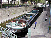 Una gabarra se aproximaba. Me senté frente a la tercera compuerta del canal, intercambiando con los navegantes miradas incómodas que se transformaron en medias sonrisas. El borde del bote descendió, de mis pies, a dos metros por debajo. La embarcación reanudó su lenta y corta travesía. Los parisinos continuaron paseando a sus perros.