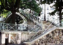 Último puente hacia el Quai de Valmy, en la esquina con la rue Léon Jouhaux, punto aventajado para ver como el canal St-Martin desaparece bajo las calles, a través de un arco de piedra.