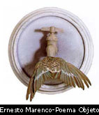El poema-objeto (aquello que se podría escribir, pero por suerte no todo hay que decirlo con palabras), nos dice algo. Posee sentido y significación. Es un lenguaje: emite poesía. Son esculturas moldeadas, apenas modificadas. Mitad escritura, mitad pintura. Mitad escultura, mitad imagen: una especie de centauro mitológico y, a la vez, moderno.