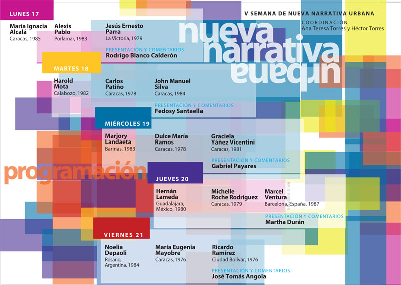 Hoy, 17 de Mayo de 2010 comienza la 5ta edición de la Semana de la Nueva Narrativa Urbana. Una iniciativa del Pen Club Venezuela, coordinada por Ana Teresa Torres y Héctor Torres.