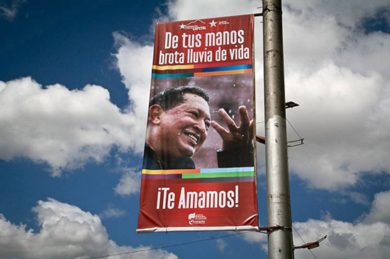 En la propaganda más reciente del chavismo, colocada a lo largo de las avenidas Boyacá y Bolívar, y en el centro de Caracas, aparece Chávez junto al texto: “De tus manos brota lluvia de vida. ¡Te amamos!” Ahora, ¿qué significa esa curiosa palabrería tan desligada de la política? Se trata de la profundización del posicionamiento de Chávez como deidad.