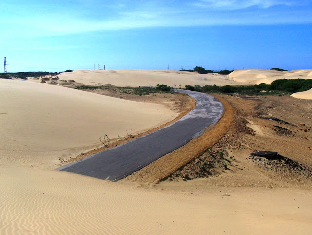 La carretera que va a a paraguana muchas veces se tapa por la arena o por lo menos era de esa manera hasta finales de los años 90 que fue la ultima vez que fui para alla, al principio de ella y tambien en la vela de coro hay maquinaria para despejarla cuando las dunas la tapan. En realidad no se cual es la situacion actual o si se sigue tapando