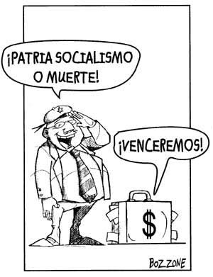 DEMOCRACIA al mejor estilo del socialismo del siglo XXI: no hacer nunca cola porque existe un empleado que lo hará, o un guardespaldas que abrirá el paso. No comprar en los moribundos y casi extintos MERCALES o los abastos Bicentenarios porque hay que hacer cola y el sueldo da para mucho más. No necesitar hospitales públicos porque el sueldo alcanza para una clínica privada. O gastarse más de 60.000bsF en el funeral de un militar como Müller Rojas. O decir en cadena nacional que a Venezuela no le afectará la crisis mundial… Y que lo que estamos viviendo es culpa de las empresas privadas que la tienen agarrada con él ex-tinto.