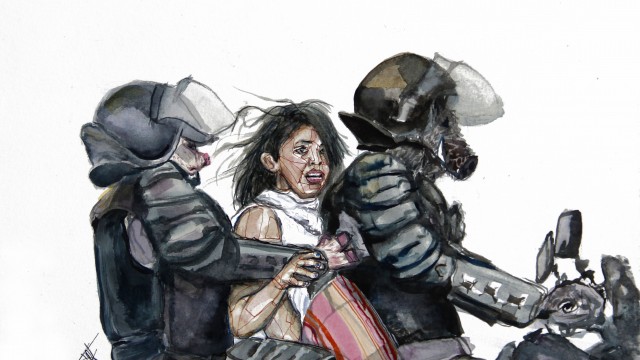 Era la primera vez que salía a una protesta y se le notaba. La piedra era demasiado grande para ella y la bomba molotov que había preparado con una receta de Internet nunca iba a encender.