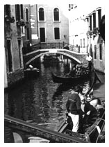 Desembarcaron en el trachetto de Zattere y entraron en una pequeñísima calle detrás de la iglesia de San Gervasio. Ahí estaba la herencia. Una de esas treinta viejas góndolas de madera que esperaban dos cosas: ser calafeteadas y un dueño de ultramar. A su perplejidad fueron entregados seguidamente un acordeón con el fuelle vencido y una maleta con dos pantalones negros, dos sombreros de paja raídos por la antigüedad y una franela de rayas azules que no tardó en colocar sobre su pecho. Sonrió y se imaginó envuelta en el atuendo de su antepasado, empujando con un remo acanalado su negra góndola asimétrica. El viejo encargado refunfuñó con alarma, mientras el jóven, atento a la imponente figura de la muchacha, dijo con convicción: !habrá una revolución en nuestra Pequeña Venecia!.