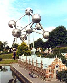Heysel, la explanada del ocio Belga, alberga el parque de exposiciones, edificios comerciales, un parque de toboganes y juegos acuáticos, mini Europa y el Atomium. De lejos, el Atomium se erige impresionante y, como una señora muy bien conservada, hace increíble la idea de que tiene casi 50 años de edad. Es, después de PostdammerPlatz, lo más futurista que se me ha parado en frente. Fué construído para la exposición universal del ´58, inevitables comparaciones las comparaciones con Eiffel, diseñado en base a la estructura de los cristales de hierro. El elevador sube 92 metros en cosa de diez segundos y el vértigo se maximiza cuando apagan las luces y se deja ver el ascenso por el túnel iluminado. Desde arriba, Bruselas es un conjunto en el fondo del paisaje. Mini Europa no podía estar mejor ubicado: parece un gran ciudad vista desde muy alto y hace más real la sensación de recorrer una estación espacial. Adentro, hay varias esferas que pueden ser visitadas: la superior es un mirador y restaurante, la inferior es un museo de comics dedicados al edificio mismo, y en las esferas restantes hay desde reseñas históricas de la construcción hasta salas de reuniones.