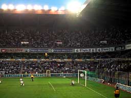 Partido de apertura del torneo 2001 - 2002 de la primera división entre el campeón, Anderlecht, de Bruselas, y el visitante, Antwerp F.C., mi equipo sentimental, junto a los Tigres de Aragua. Más de 23 mil personas colmaban el estadio. Alrededor de 1/8 del estadio era de los visitantes: vestidos casi uniformemente de rojo, la barra de Antwerp justificaba su calificativo de la fanaticada más ruidosa de Bélgica. También la más violenta. Agredían verbalmente a los 7/8 restantes del estadio, que uniformados de púrpura y blanco, esperaban calmados y confiados del triunfo. Antwerp canta al unísono en flemish mientras los dos equipos calientan en la grama. Antwerp canta al unísono en flemish durante todo el primer tiempo de un partido bastante parejo que se va al medio tiempo sin goles. Con golpes de travesaño, bloqueos espectaculares del portero rojo y un guardameta blanco, De Wilde, haciendo ejercicios para mantener las piernas calientes. La estrella del Anderlecht, Gilleis De Bilde sale a calentar, pero no entra durante el primer tiempo. Son las nueve de la noche y aún el sol opaca la luz de las lámparas. Durante el medio tiempo, todos salen a tomarse una cerveza. Un anunciante ofrece una cerveza a cada fanático si Anderlecht golea con una diferencia de tres o más a su rival. Otro anunciante, Belgacom, uniforma de aguamarina las vallas giratorias.